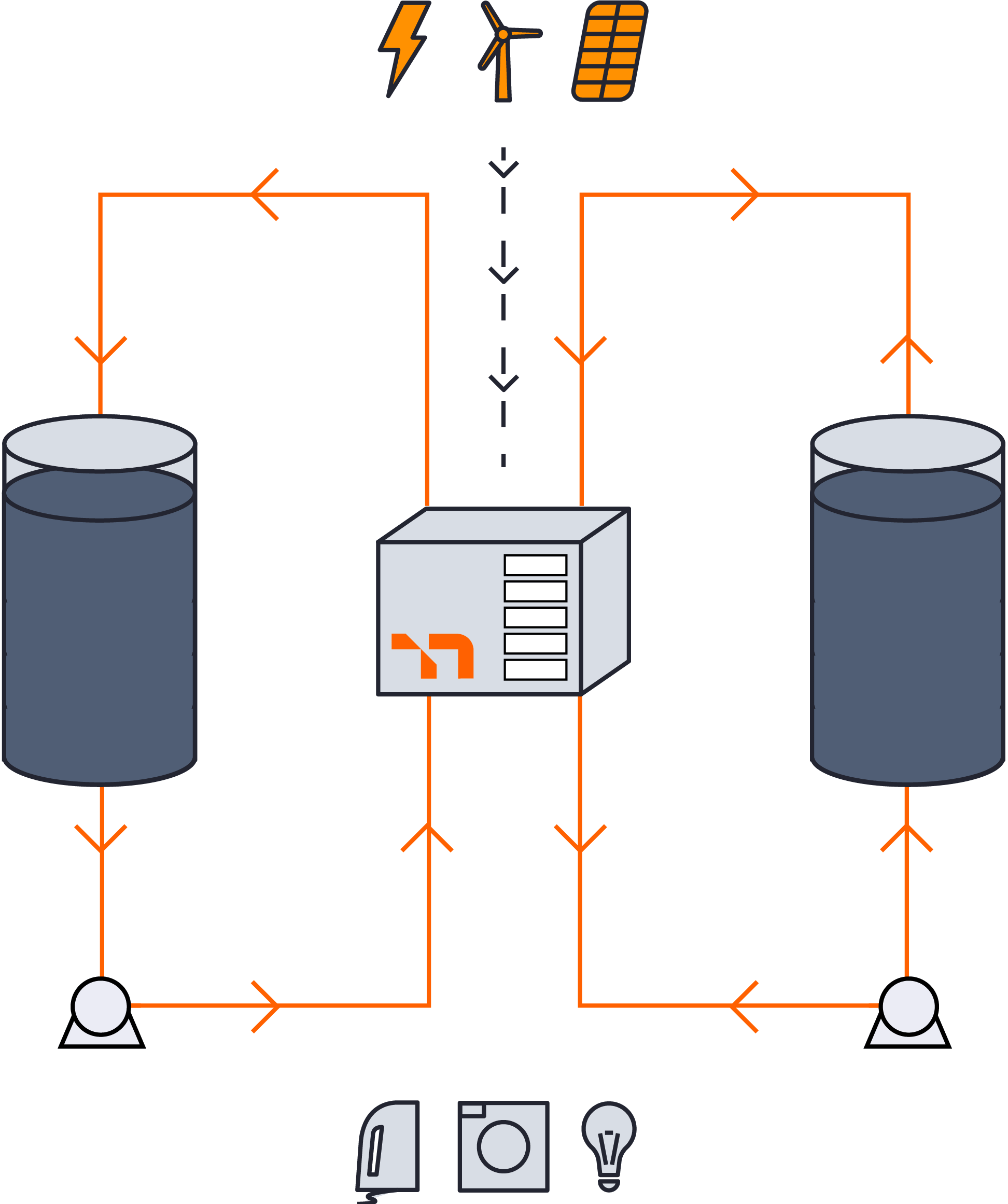 Unlike other batteries, where the total power and amount you can charge from it are fixed, Mhor flow batteries offer absolute flexibility through modular storage solutions that can scale and optimise for a wide range of applications.